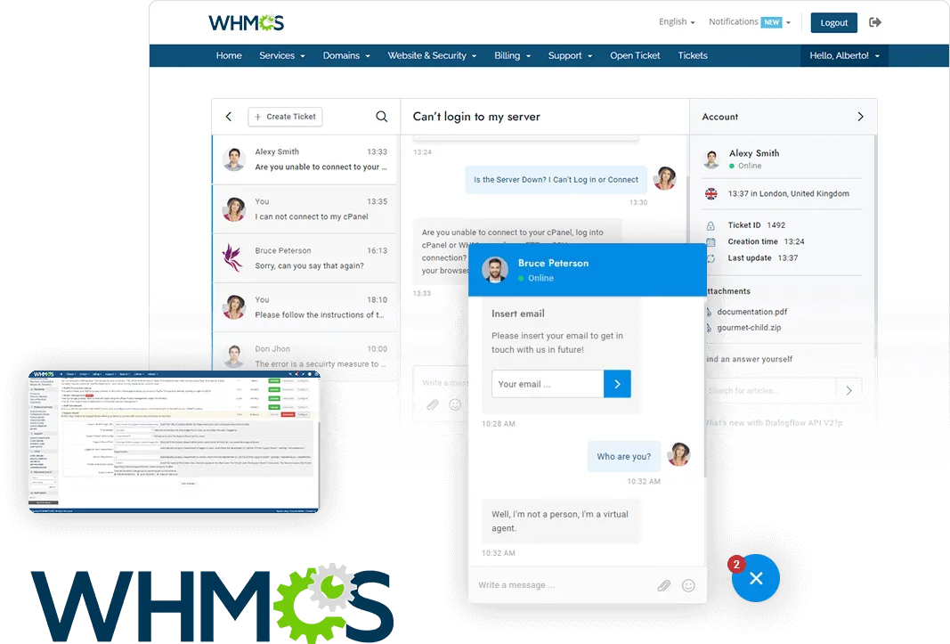 WHMCS müşterilerinizin profesyonel bir sohbet paneli ile personelinizle gerçek zamanlı iletişim kurmasını sağlayın. Ayrıca akıllı bot özelliği sayesinde müşteri sorularını otomatik olarak cevaplayarak zaman kazanın.